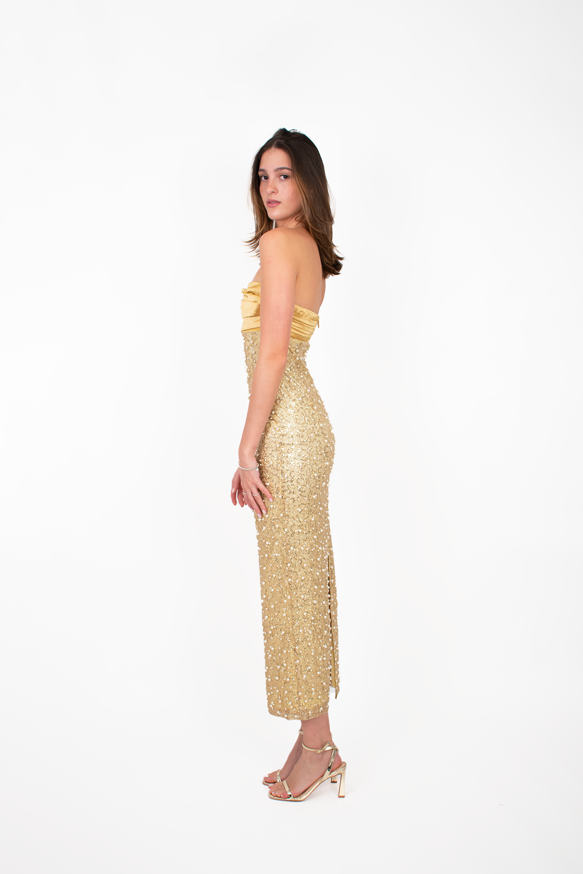 Nosotras nos encargamos de la limpieza, pero no olvides ser cuidadosa con el vestido. Evita jalar la tela y las manchas de grasa.